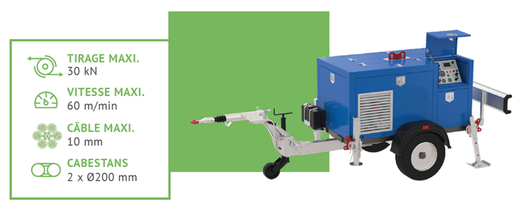 Treuil hydraulique 30kN conçu pour le tirage de câble souterrain et câble à fibre optique.